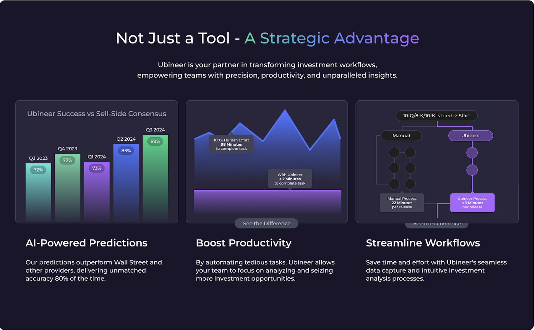 Ubineer is a leading provider of generative AI analysis and predictive financial software that streamlines workflow and decision-making for CIOs, portfolio managers and analysts.